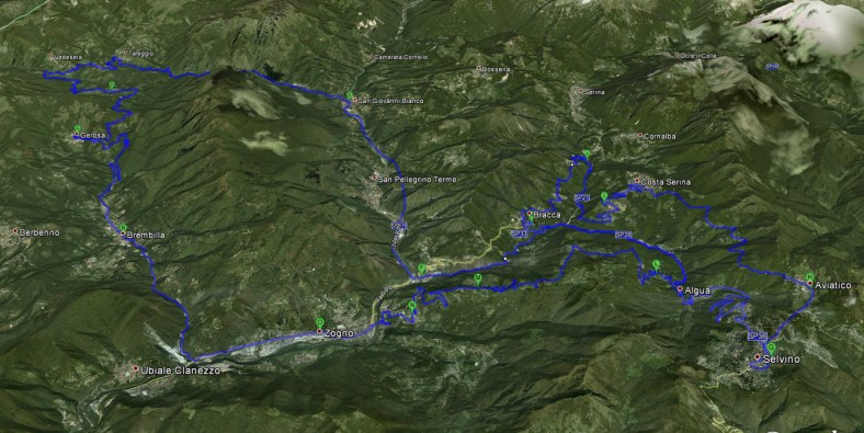 Attraverseremo il paese di Peghera e poi proseguiremo verso Olda per scendere a San Giovanni Bianco passando per gli orridi e quindi anche per le strade che accolgono annualmente il Rally Prealpi Orobiche.