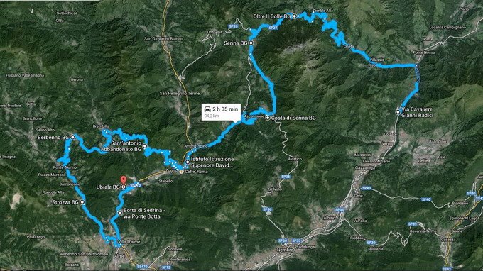 E così dopo un’oretta abbondante, risaliamo sulle nostre auto in direzione Zogno, Sant’Antonio dove purtroppo la salita è stata rallentata da un turista (e relativa andatura turistica), e poi giu in direzione Brembilla e poi Laxolo, Berbenno, Strozza, Almenno.