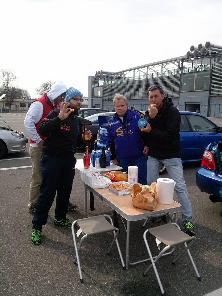 La giornata si svolge allegramente, tra parecchie risate e parecchie auto Giapponesi. Tempo bellino, un po’ di vento ma secondo le previsioni doveva piovere a catinelle ed invece nulla, meglio così. La mattinata scorre velocemente e tra un turno ed un altro alle 12 arriva l’ora dell’aperitivo, a seguire il rancio, i nostri soci si sono organizzati alla grande, chi ha portato il bere, chi il mangiare, chi il dolce e chi il caffè, spettacolare….
